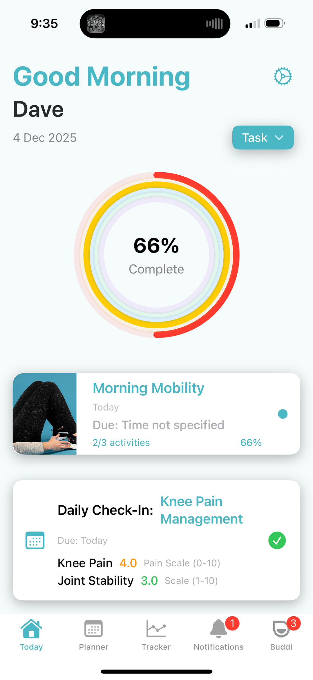Whether you're managing a health condition, working toward fitness goals, or trying to build better routines, Buddi gives you the support you need to succeed.